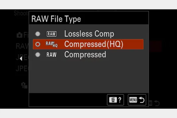 輕量化的 RAW 格式可以在較小的檔案中實現高影像質素,令管理加倍輕鬆。[Compressed (HQ)](壓縮(HQ))格式可在輕量化 RAW 檔案中提供更高的壓縮率,同時優先確保影像質素,而[Compressed](壓縮)格式還可支援更長時間的拍攝。