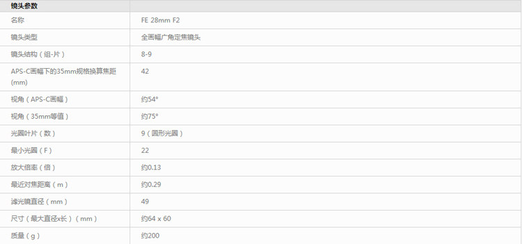 索尼 Sony FE 28mm f/2 鏡頭 (Sony FE 卡口)