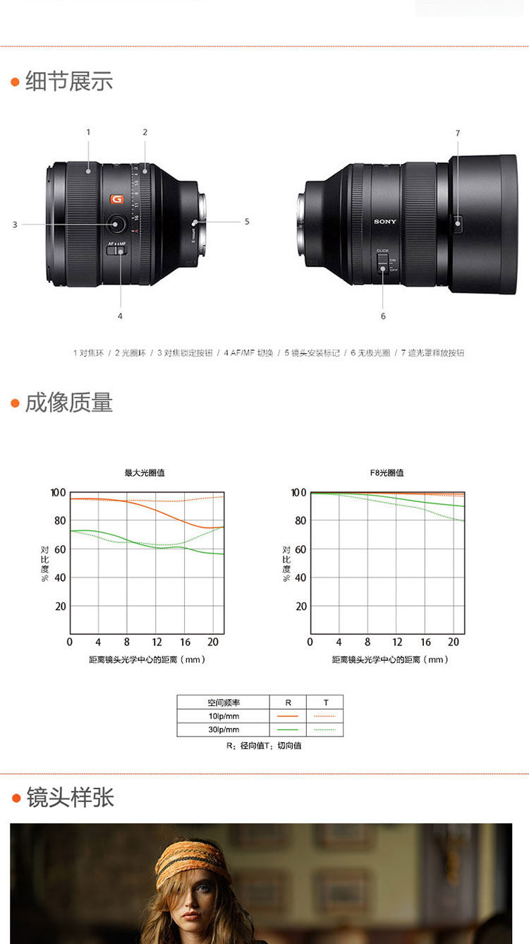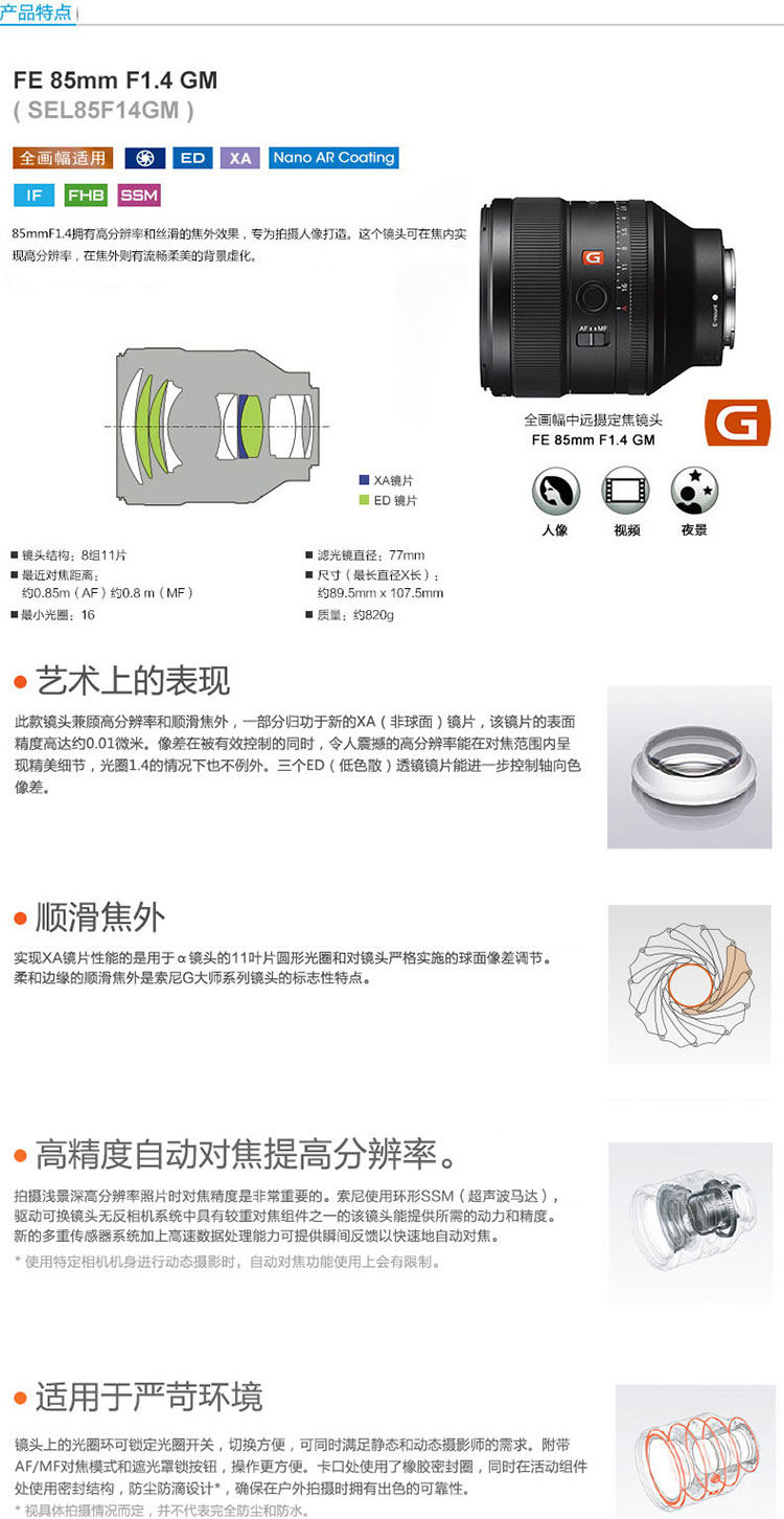 索尼 Sony FE 85mm f/1.4 GM 鏡頭 (Sony FE 卡口)