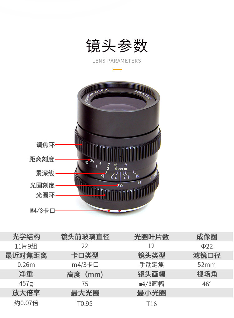 | 最大光圈 | T0.95 |