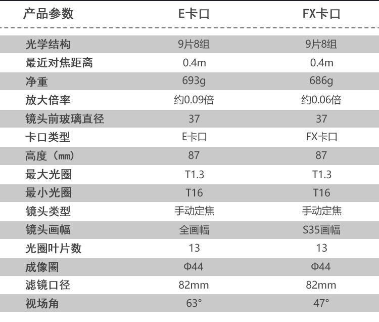 | 最大光圈 | T1.3 |