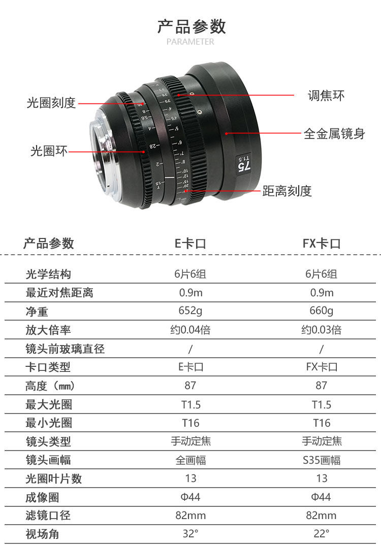 | 焦距 | 75mm |