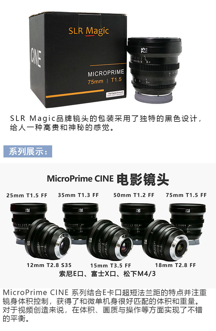 SLR Magic 75mm T1.5 MicroPrime CINE 電影鏡頭 (Sony E 卡口)