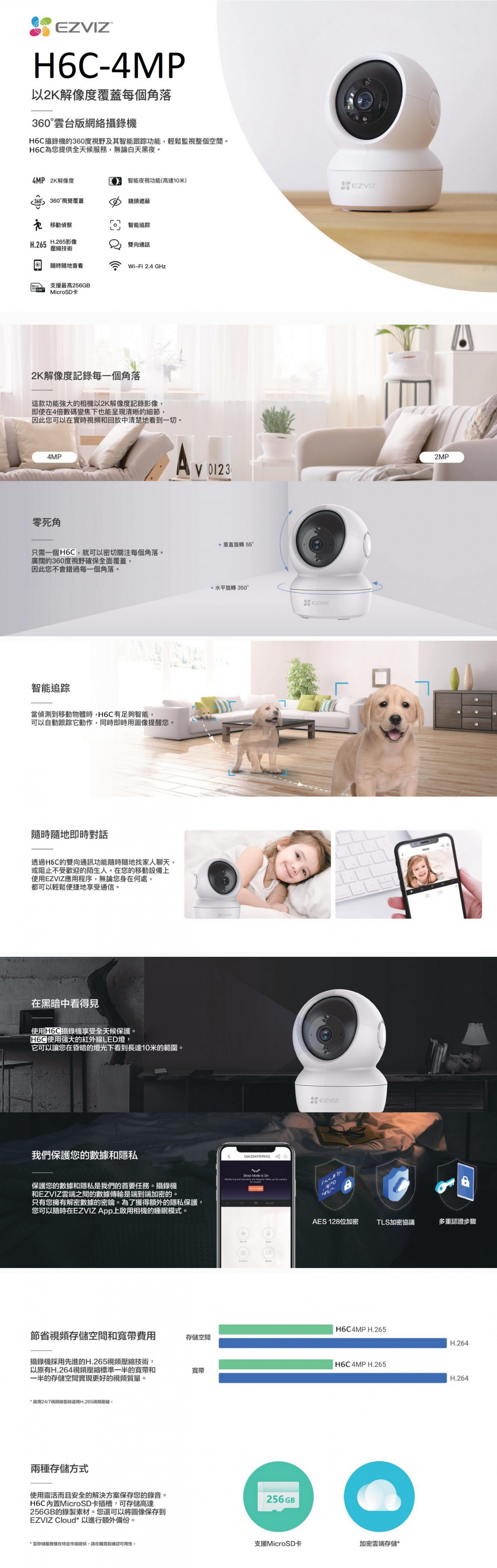 Ezviz H6c 4MP Pan & Tilt Wi-Fi Camera 智能家居攝像機