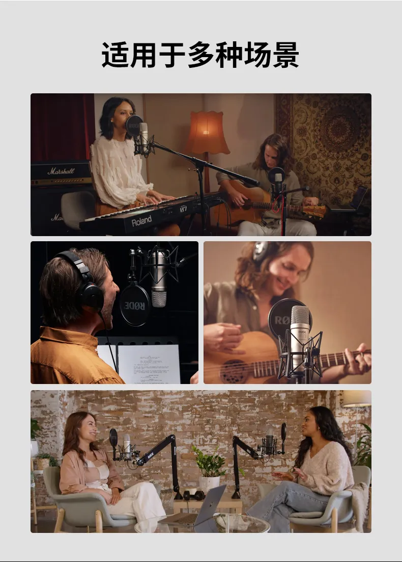 包裝內含錄音棚級減震架和防噴罩,XLR和USB線材