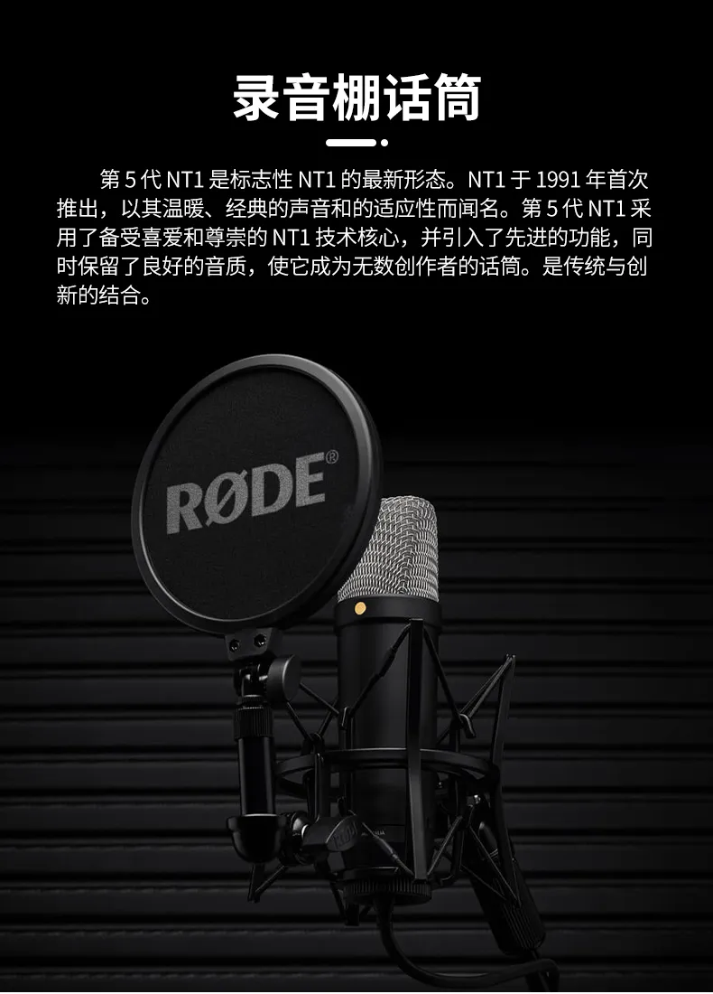Rode NT1 GEN 5 電容式錄音室麥克風 (黑色)